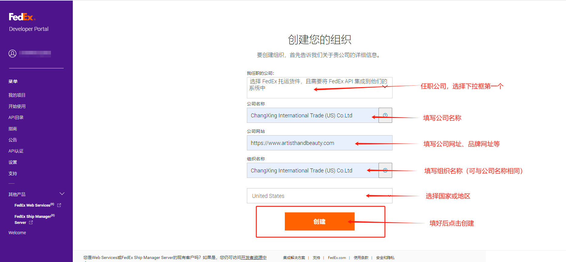 第二步:进入Fedex开发者中心申请开发者帐号