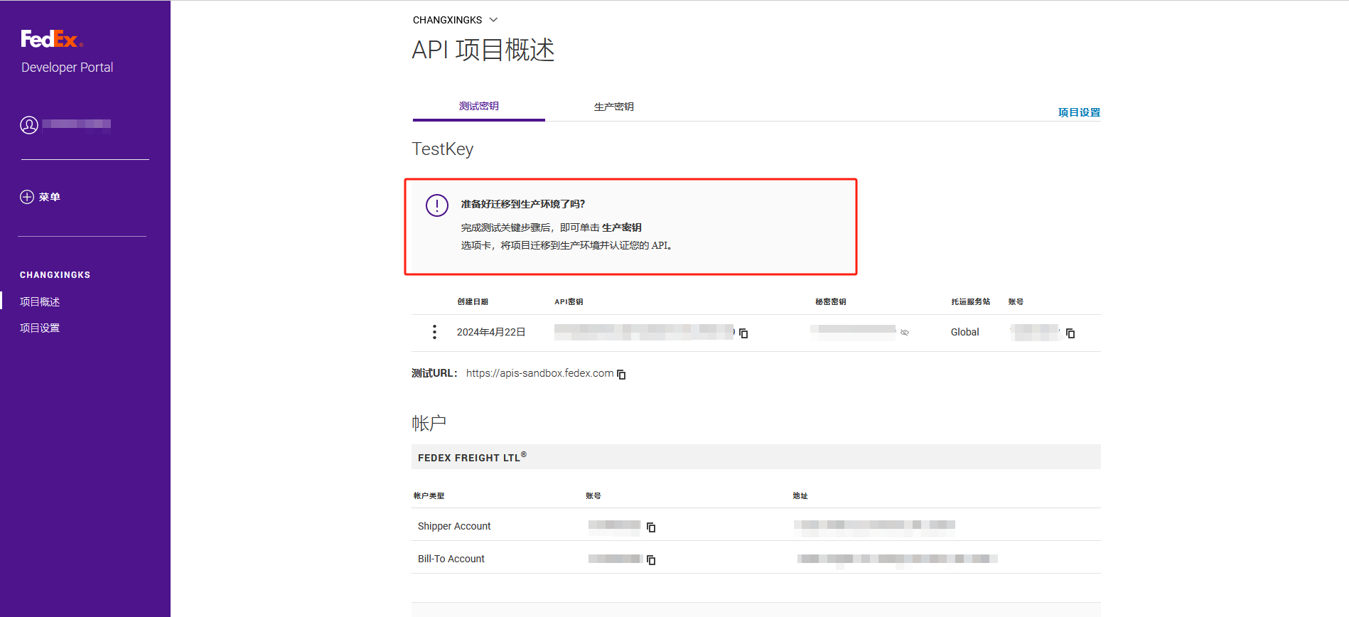 测试通过后修改对接网址:https://www.fedex.com
