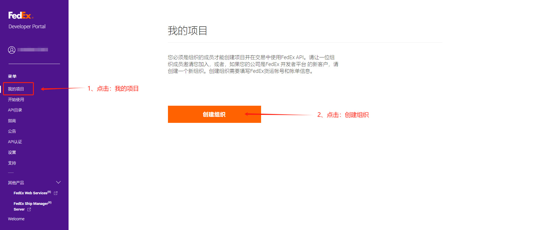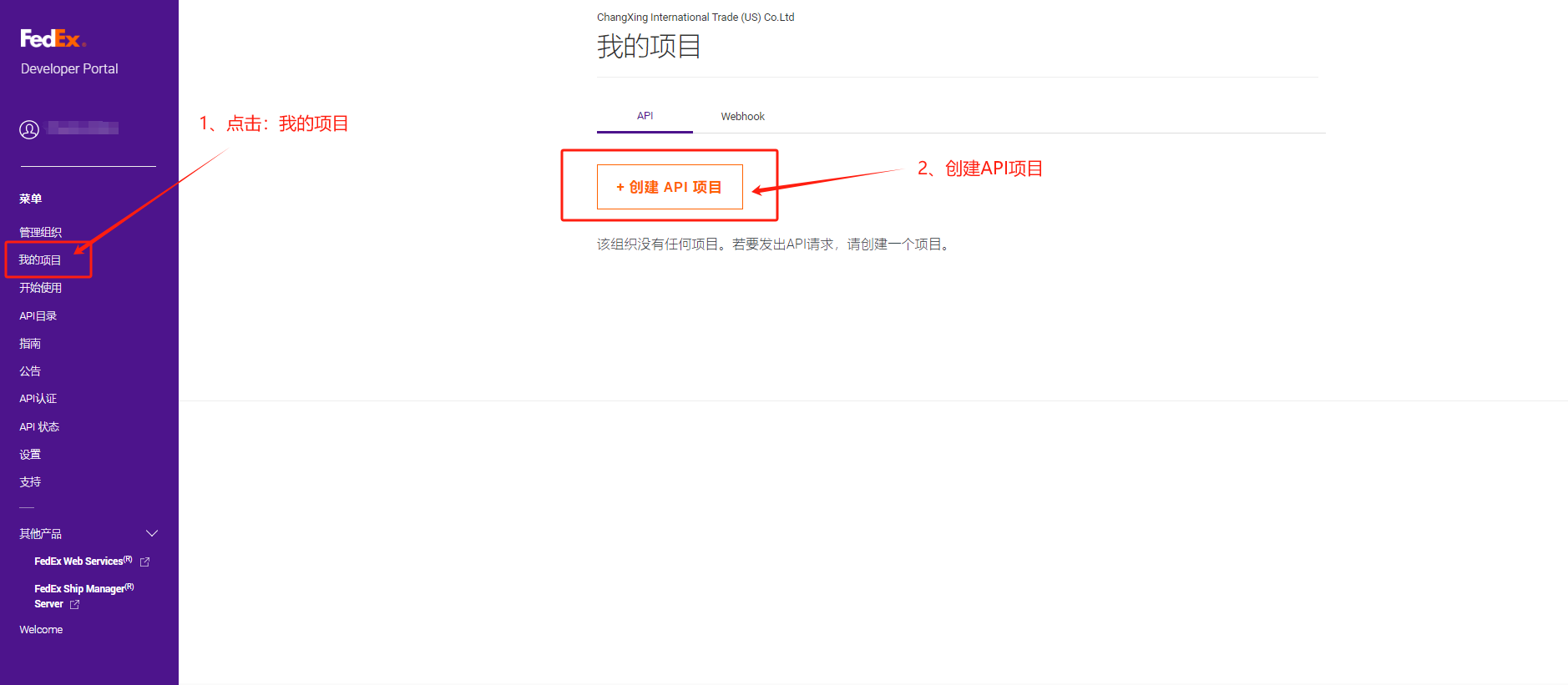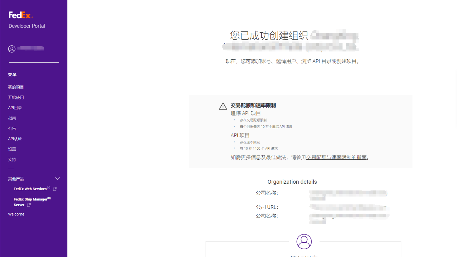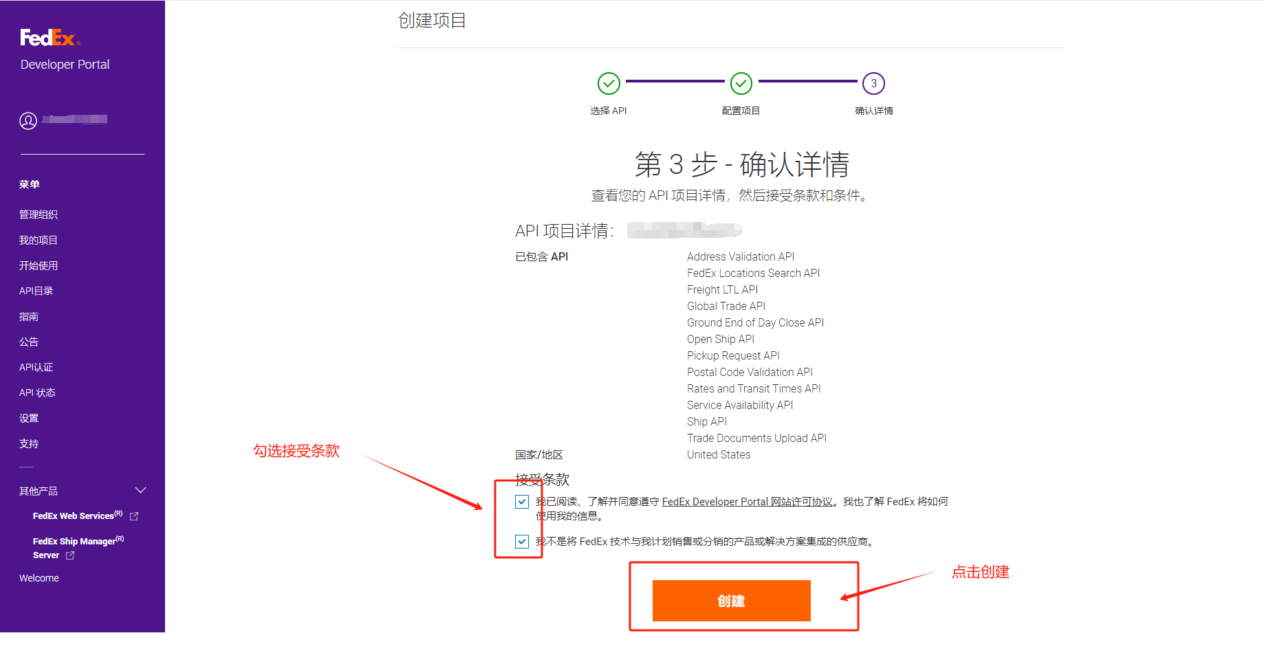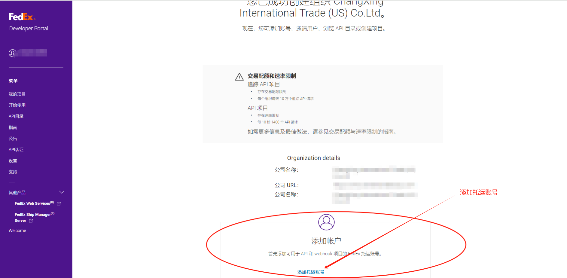 打开网站:https://developer.fedex.com/api/zh-cn/home.html# 用第一步注册的FEDEX账号,登陆开发者中心。