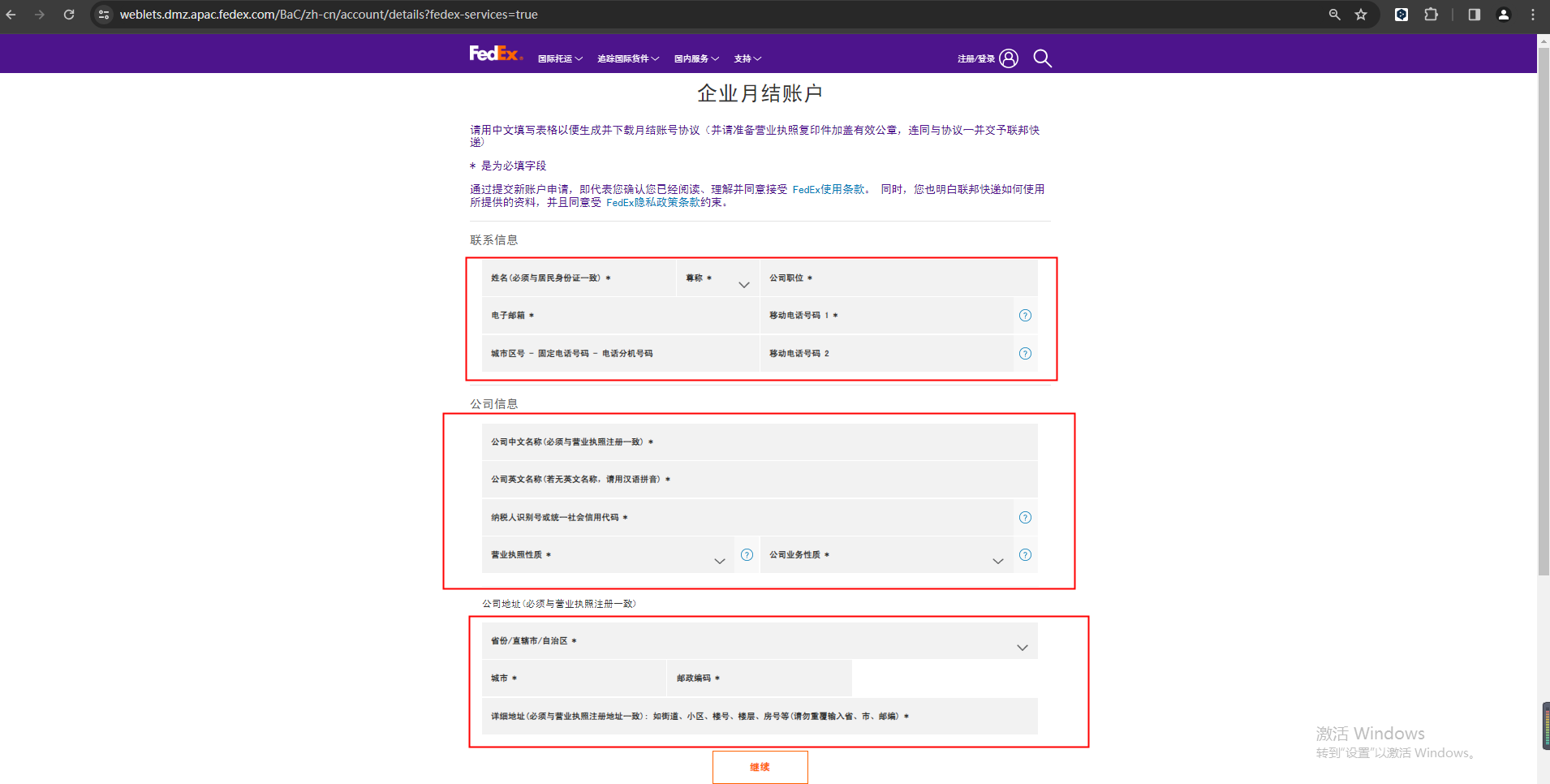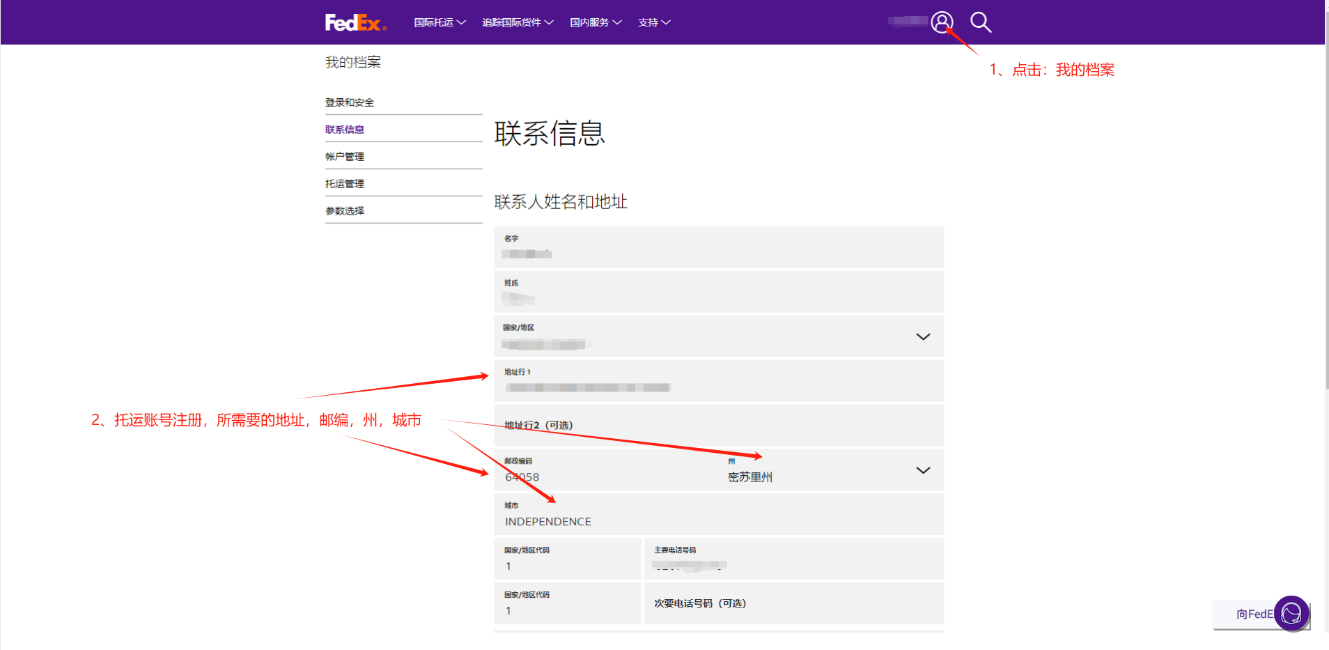 1.3.注册完成后开通fedex帐号(开通帐号过程中有问题可联系fedex工作人员)