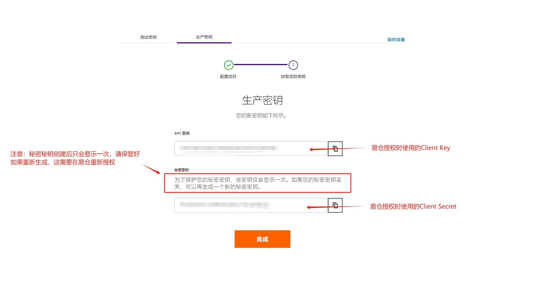 3.2、创建生产秘钥(密钥只会显示一次,切记需要自行保存到文本中去)