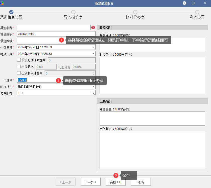4.3、添加渠道报价表,绑定上面新建的代理