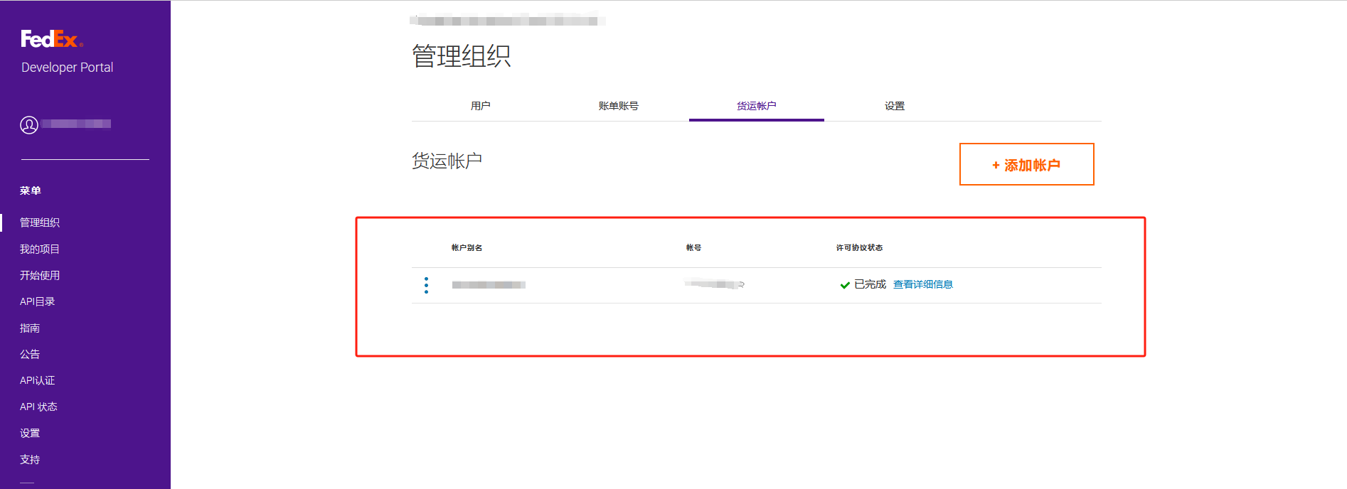 入口一、组织创建成功之后,点击添加账户下 添加托运账号