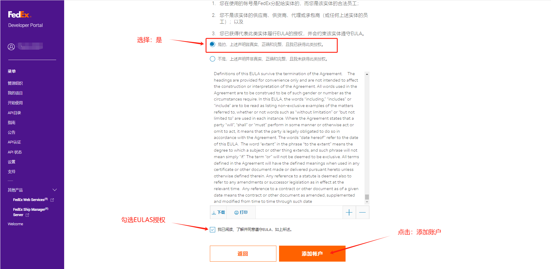 (此文档是FEDEXREST的帐号授权指引,适用于fedex最新RESTful API、请使用浏览器的无痕模式浏览)