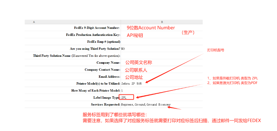 注意:如果在封面表中勾选了多个标签服务类型,则每个服务类型需要有一个压缩包与扫描件,例如:勾选了,Ground与Express两张服务类型,客户经理需给两个压缩包,一个Ground的标签测试压缩包,一个Express的标签测试压缩包,需将这两种类型中的测试压缩包中测试物流标签都打印并扫