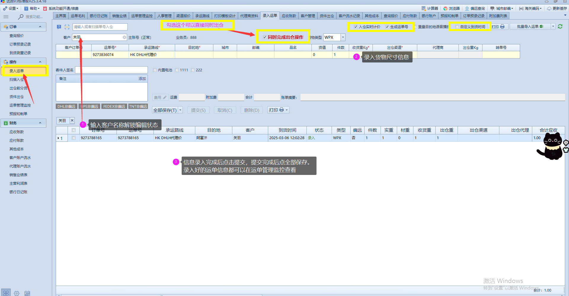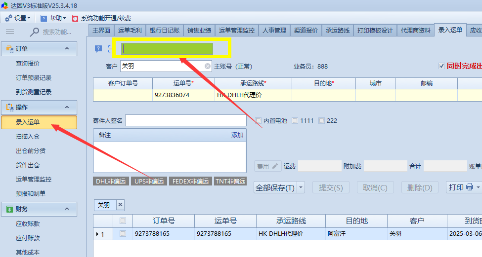假设预录订单或客户下单可以直接复制订单号粘贴到录入运单按回车键检索,或者订单预录记录批量入仓也可以直接到入仓界面。