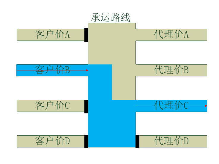 假定承运路线为“香港DHL代理” 目前有4家合作代理都有这个报价 分别为(代理价A,代理价B,代理价C,代理价D)4份报价,这4份报价分别加上利润后对应的客户价为(客户价A,客户价B,客户价C,客户价D)