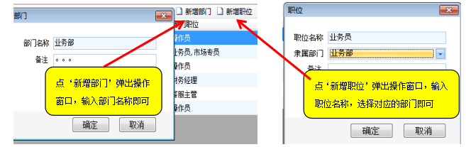 通过人事(权限)栏目可以开设(或修改)内部职员的系统操作帐号,并对不同岗位职员设置不能的系统操作权限。一、职员帐号的新增(如果是第一次新增帐号,需要先设置公司的组织框架<新增部门和新增职位>,如下图) 新增职员帐号,同时设置权限(设置成功后,此职员即可凭帐号密码登录D2系统操作) 二、职员帐号信息和权限的修改(双击职员列表对应的栏目,弹出操作窗口,修改信息保存即可)文档更新时间: 2021-04-17 11:25 作者:admin