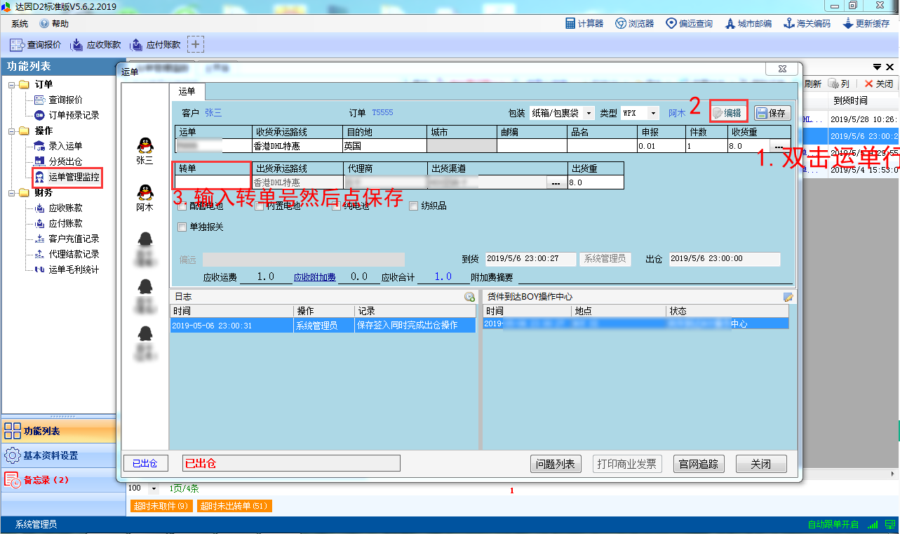 一键获取转单使用该功能的前提是已经接入代理1.单击运单管理监控界面 右上角的 待录入转单 弹出批量录入转单对话框2.单击一键自动获取转单号 系统自动从所有已接入代理获取转单号并自动匹配输入,然后单击保存 当出现以下提示,是因为变更了出货渠道,需要打开运单编辑界面输入转单双击运单行打开运单编辑界面:文档更新时间: 2019-05-31 18:00 作者:admin