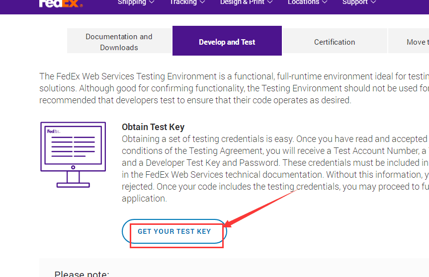 如果当前FEDEX帐号没有对接过第三方系统打单,初次对接前需要提交测试,测试方法如下